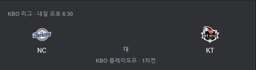 | NC VS KT 2023 플레이오프 2차전 프리뷰 (0) | 2023.10.31 |
