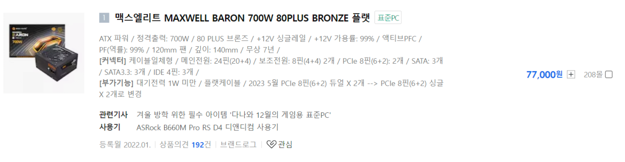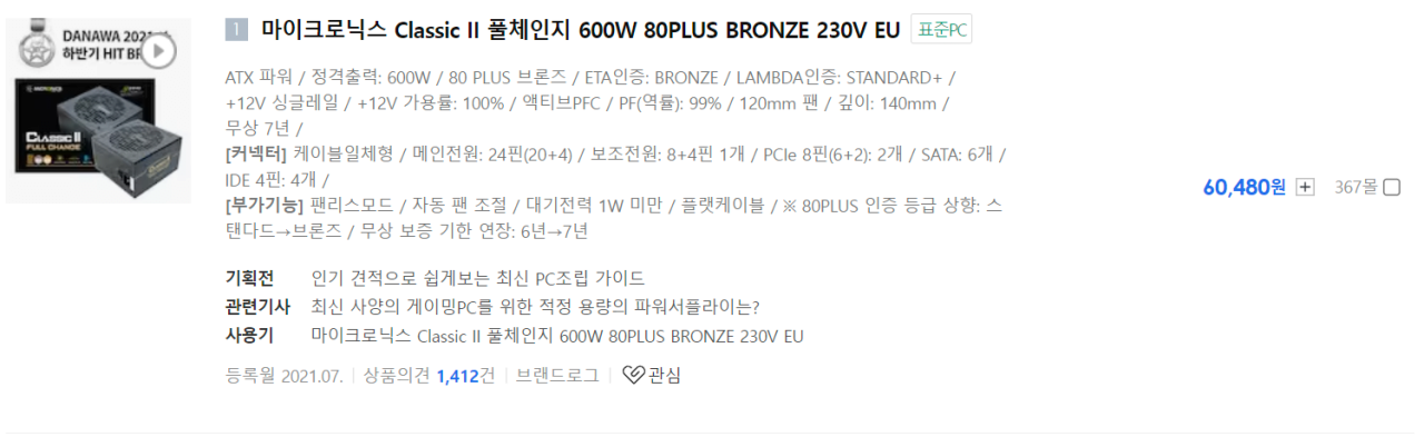 파워만큼은 제대로 된 걸 사셔라 그게 저의 추천입니다.