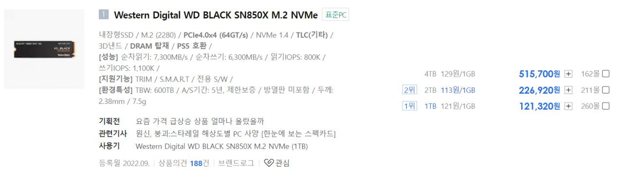 삼성 980 pro 990 pro 제외했습니다.