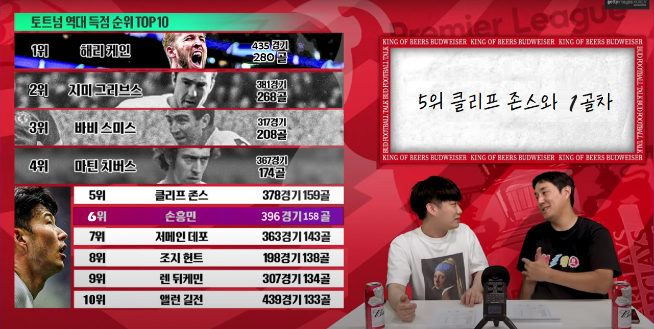 3. 토트넘 역대 득점랭킹 5위